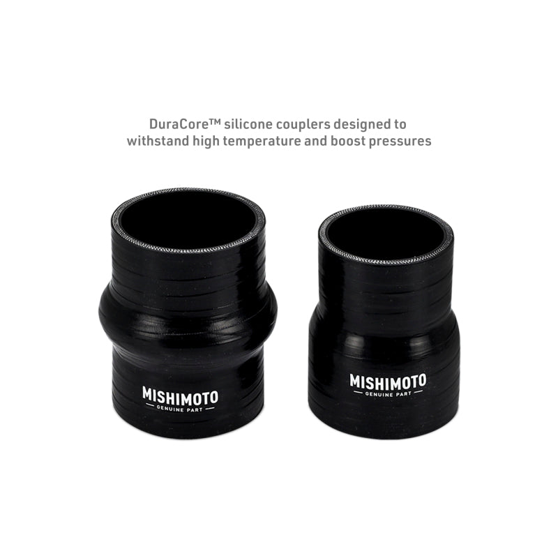 Upgrade your 2024+ Ford Mustang EcoBoost with the Mishimoto Intercooler and Pipe Kit, a complete system designed to maximize airflow, lower intake temps, and boost performance. This kit combines a direct-fit bar-and-plate intercooler with high-flow hot-side and cold-side aluminum pipes, delivering safe, tune-free power gains.--The intercooler features cast aluminum end tanks and fits in the stock location with a 60% increase in core volume. Oversized 63mm inlets/outlets improve flow, while a diverter plate ensures even air distribution. Foam sealing strips and a custom-formed air deflector maximize airflow through the core and reduce NVH. Four EPDM rubber sandwich mounts isolate vibration and add rigidity. Gains of up to 12 hp and 11 ft-lbs of torque are possible with no tuning, and a pre-drilled NPT port allows for auxiliary sensors or data logging.--The included intercooler pipes are made from durable aluminum with cast connections for strength and precise fitment. A cast turbo outlet elbow integrates the blow-off valve seat and retains factory harness clipping points for a clean install. CNC-machined quick-disconnect fittings, DuraCore⢠silicone couplers, high-torque worm-gear clamps, and an ID-matched transition coupler ensure secure, high-flow connections. Extra clearance also allows compatibility with the Mishimoto performance radiator.--Available in polished or wrinkle black finishes, the Mishimoto Intercooler and Pipe Kit provides improved airflow, reduced intake temps, better underhood aesthetics, and long-term durability. Installation is straightforward with all hardware included, and every kit is backed by the Mishimoto Lifetime Warranty.